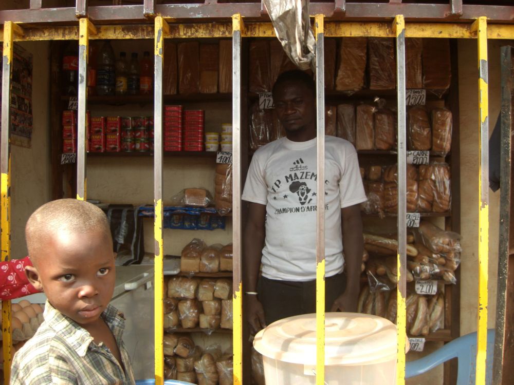 It may look like a jail cell, but it’s actually a bakery! (I did have his permission to take this photo… it’s just that Congolese men typically don’t smile in photos.) We have since gone back to buy more — this bread is GREAT. They add sugar or something to it; it’s sweet and delicious. A little dusty on the outside, maybe, but tasty nonetheless.