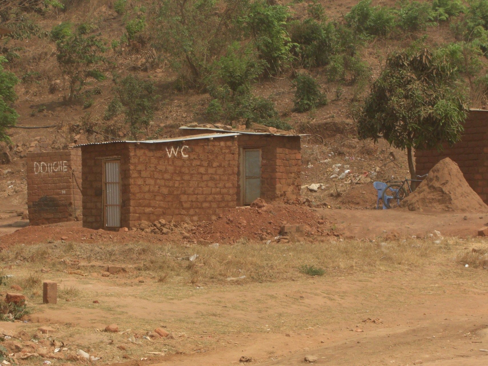 A community toilet and shower. Not sure how many people it serves. The toilet is basically a hole in the ground, so water retrieved from nearby wells must be boiled before drinking. (Hey, this is better than what Holly & I saw along the train tracks in India!)