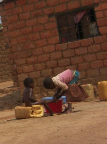 These water tanks are the result of a company social project, and there are many spread around the community now. You can see that everyone fills up their yellow jugs and carries them home. It does not look like an easy job, but it’s better than waiting for hours at the one well that had to serve the entire community prior to this.