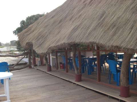 The restaurant recently added on a nice balcony. I love this thatched roof and wood fencing.