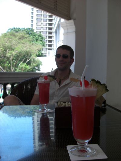 We set out for brunch and decided to see what the Raffles Hotel had to offer. They had a cute little sidewalk cafe, where we decided to dive headfirst into the Asian culture. Seb ordered the daily dim sum, and I went with the daily special, a weepingly spicy fishcake baked in banana leaf, called otak otak. Afterwards we headed to The Long Bar, where the Singapore Sling was reportedly invented. The place smelled musty, the service was slow, and we paid I’m not even kidding $45 for two not-so-great drinks. (After that expense, we didn’t dare try the “Million Dollar Cocktail” in the Raffles’ Writers Bar.)