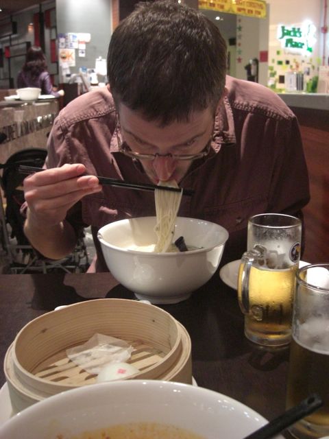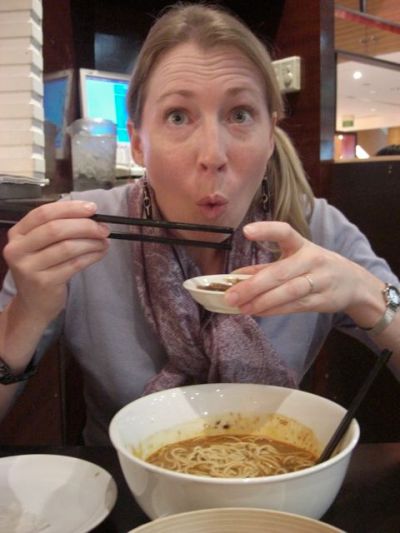 A little bit of shopping and unpacking during the afternoon, and we could barely drum up enough energy to go out for dinner. We went across the street to one of the shopping malls and enjoyed more spicy noodles, chongqinq-style, at a dim sum restaurant right across the food court from a busy “Kenny Rogers Roasters.” (Yes, there were McDonalds everywhere too… we even spotted a Carl’s Jr. somewhere in the city.)