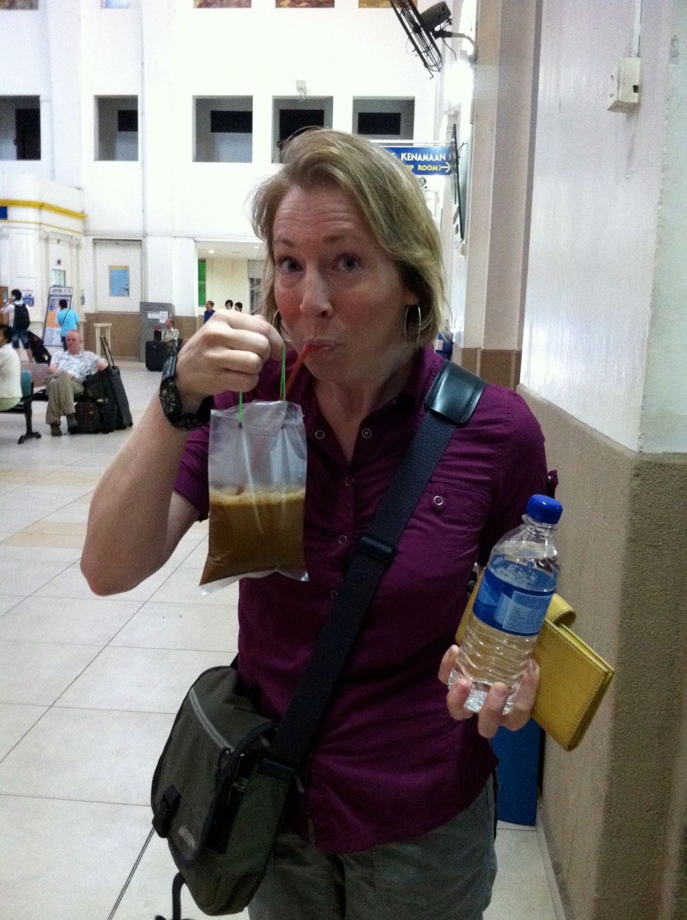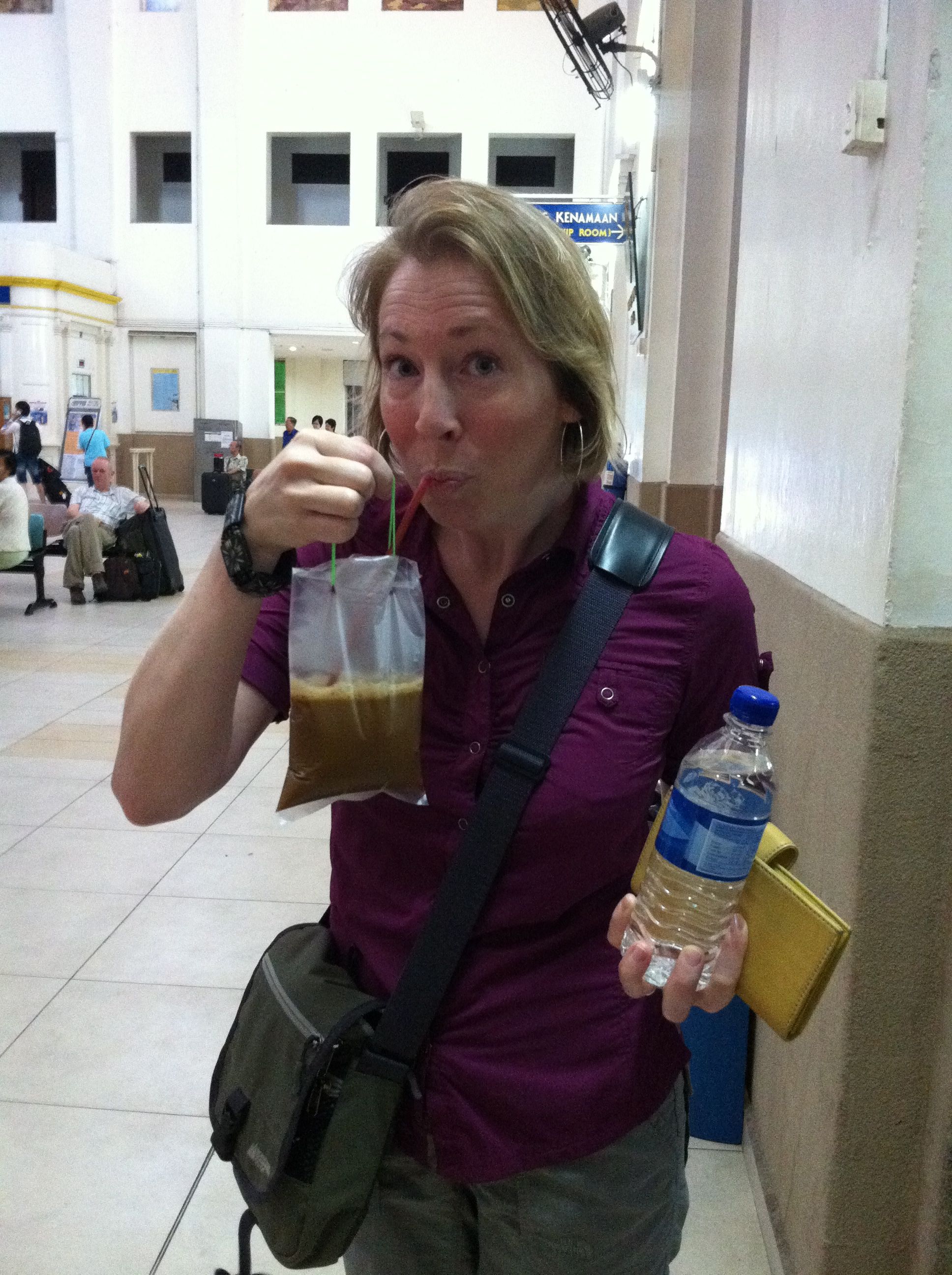 Our train to Kuala Lumpur left Singapore a taddd early for my tastes – we were at the station by 6am if I remember correctly – just to make sure we had plenty of time for check-in. We did. Ahem. We also had time to check out the cafeteria, where I got this clever coffee-in-a-bag.