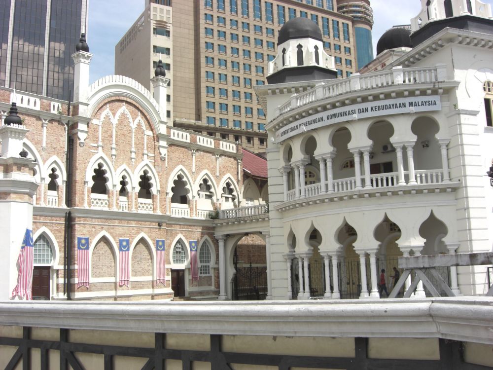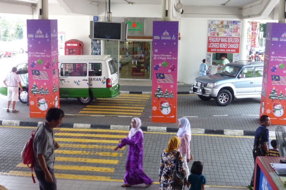 Once we arrived at the large and modern KL-Sentral station, we went to the ticket counter to pick up our next set of tickets, and were impressed with the courteous and quick service in good English. Then we tried to figure out where the KL Monorail was. Soon it should be connected to the train station, but for now it’s down several levels, around several turns, and across a busy street. Verbal directions did not help as we couldn’t keep track of all the turns. Soon someone on the street helped us out and walked with us all the way. Two for two! The third Malaysian we encountered, though, the ticket-seller for the Monorail, was less than impressed with the speed with which I pulled together 4 ringgits (about $1.36 for 2 tickets), so she asked me for another bill after the transaction was complete. Confused because I had given her exact change, I tentatively handed it to her. She pocketed it and then went on to help the next person.