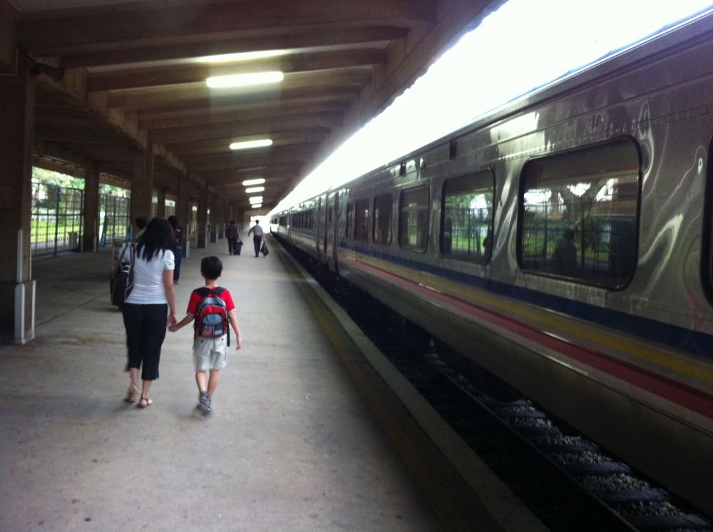 The train was nice enough, clean and comfortable. A 7-hour ride = a good opportunity to nap, read, write, or stare out the window. We passed crazy numbers of thick palm tree plantations, and lots of hilly landscapes covered in green.