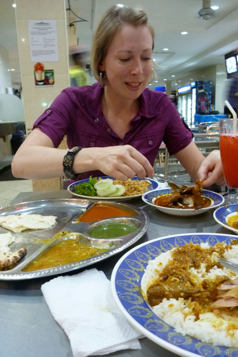 As usual, my favorite part – the food! This part of town is known for excellent (and pricey) restaurants, but we headed instead for a Lonely Planet recommendation: great street food served in open cafeteria-style eateries called “hawker centers” or “mamak” restaurants. This one was called Nasi Kandar Pelita, just outside the towers. Very cheap and very tasty! The naan was out of this world – we ordered a second platter after devouring the first. Seb ordered curried chicken and for me, curried fish. (Again with the fish! Obviously I’ve been missing my seafood while in Congo…)