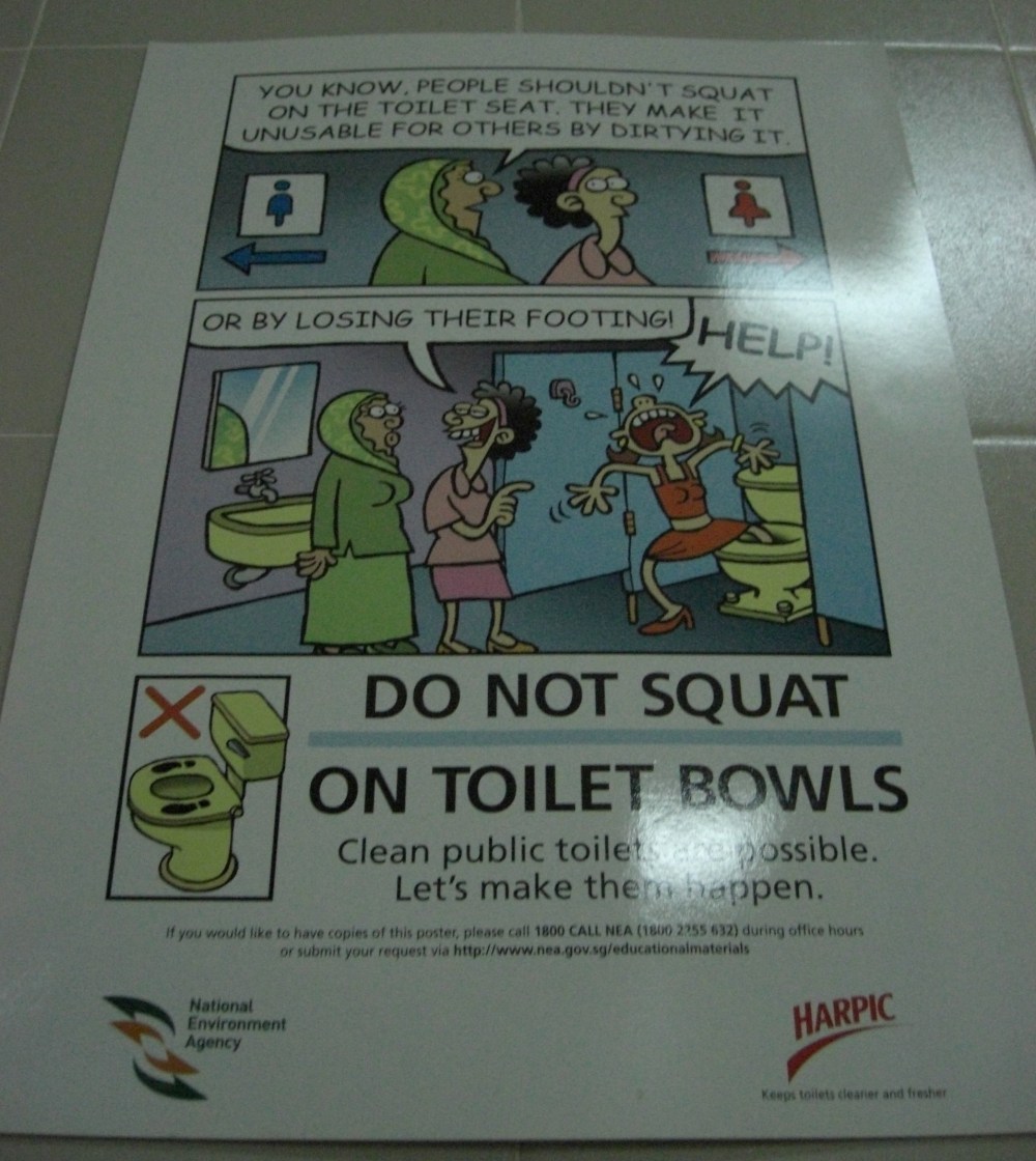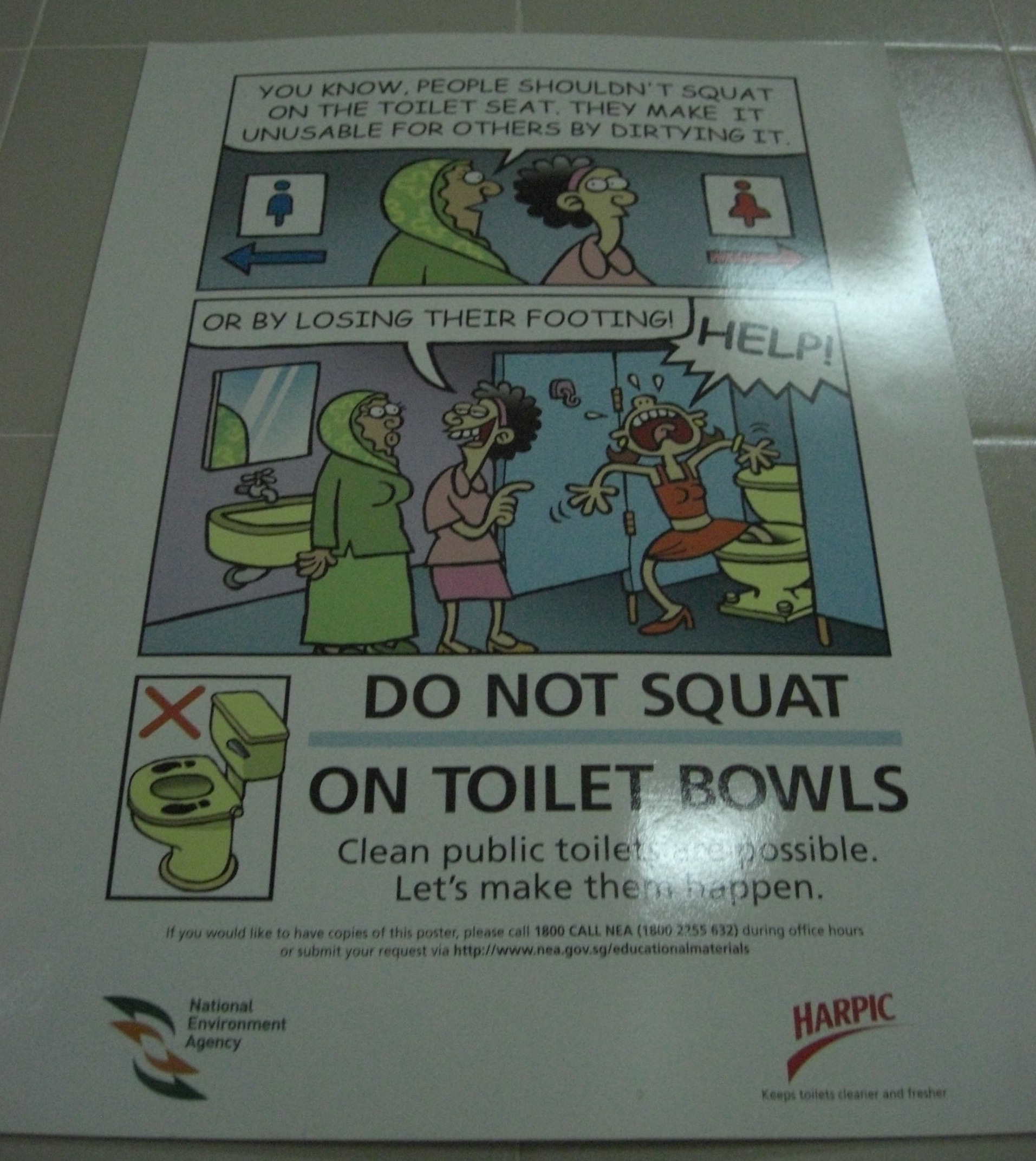 I snapped this from the busy lavatory at the Malaysian immigration office. Most public places (at least those I checked out, which were few) have a Western-style toilet or two, and then several squatters. Looks like the newfangled ones require a little toilet training! Come to think of it, I did notice a few seats with really worn spots…