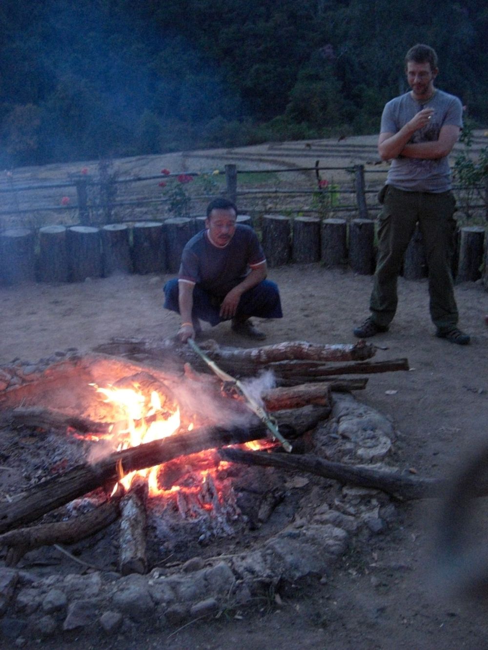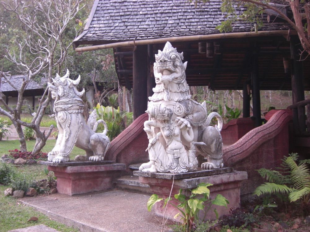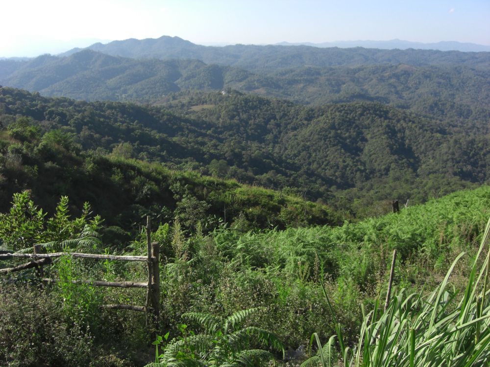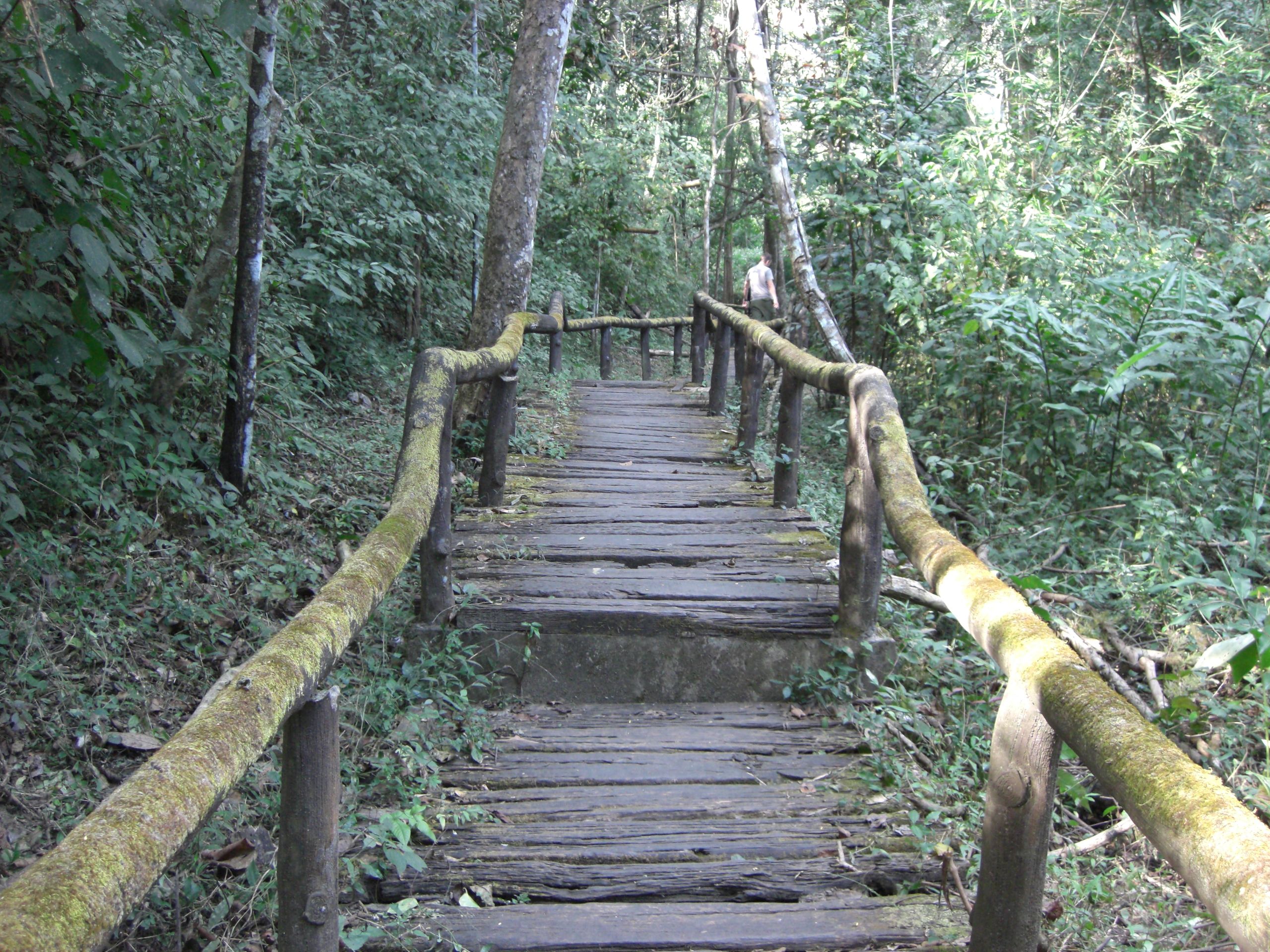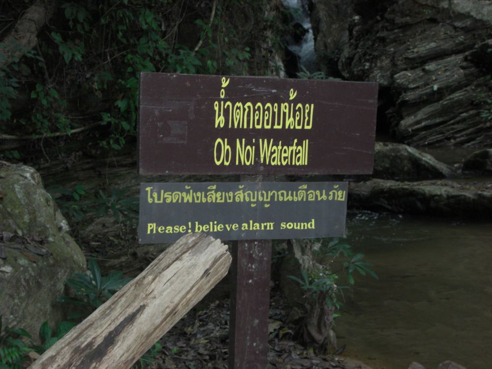 Four and a half hours after leaving Chiang Mai, we arrive at our destination for the night, Le Musikee Eco Lodge. The place is quite pretty, 1000 meters high in pine forests, intersected by 2 rivers. We are the only guests there. We’re told there’s only an hour of electricity left on the generators, so here’s a candle for the room, and bring a flashlight to dinner. The dinner is good; the brochure says everything is organically grown within the resort. We retire to our cottage, the wood slats of the floor at times revealing the ground below. The place smells wonderful, like the pine forest that surrounds us. There are stars everywhere. The only bummer was looking at an unused firepit that the cottages circled. It’s cold – we find out the next day it got down to 7 degrees C, about 45 F. But it feels refreshing. It’s like glorified camping, and I like it a lot.