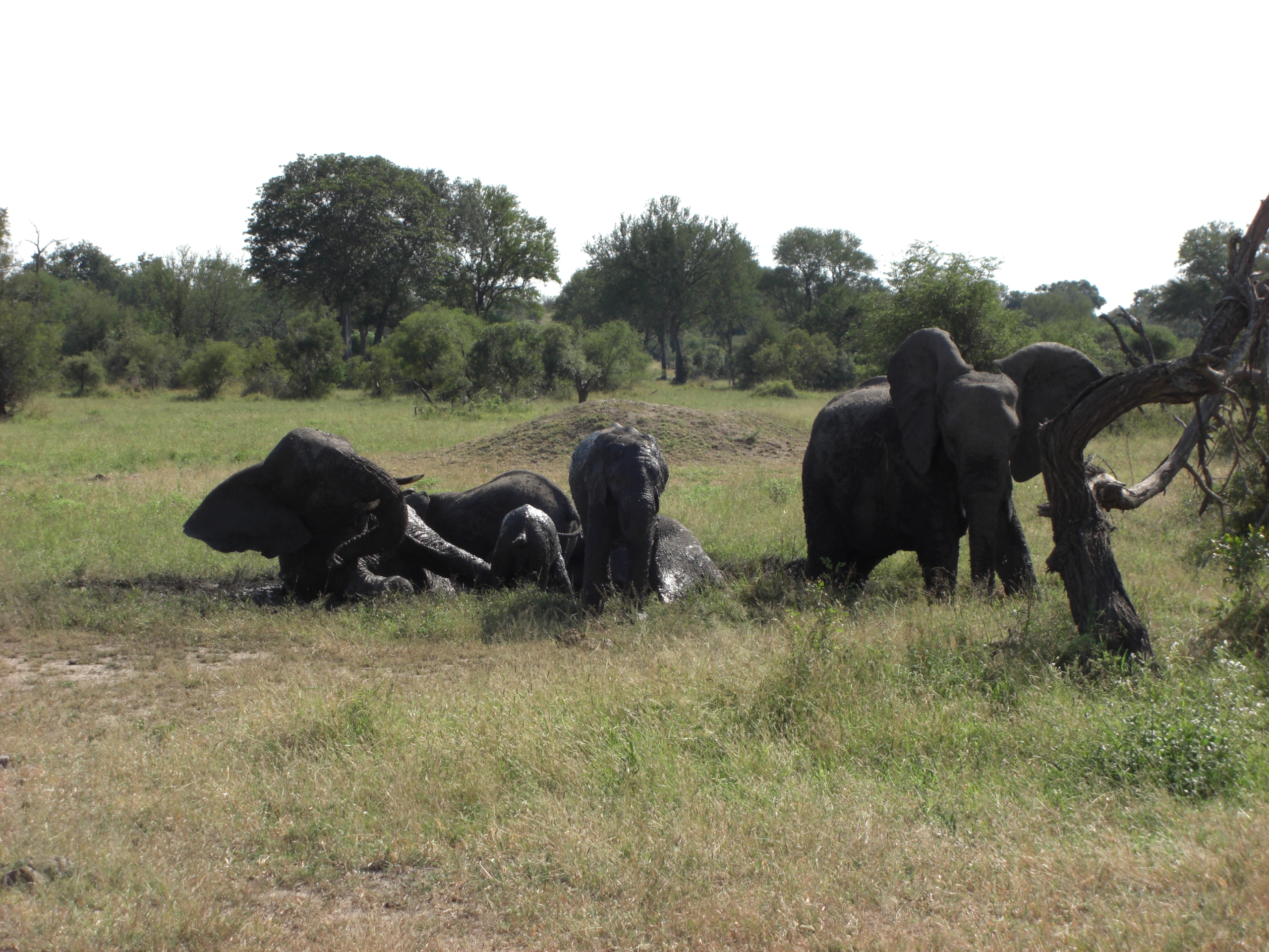 So, feeling slightly better about things, we drove to an open spot the rangers preferred for walking, past some elephants bathing in a mud pit, and then climbed apprehensively out of the vehicles. We walked for a little less than an hour, mostly talking about traditional uses of the shrubs and trees around us, spotting some birds and reptiles. The rangers told us quite a bit of information about each sighting, but I must admit to having remembered none of it. I don’t think I paid very close attention, busy instead scanning the horizon for cat-shaped stalking objects and inventing news headlines in my head about a walking party mauled or trampled to death on 16-May-2011.