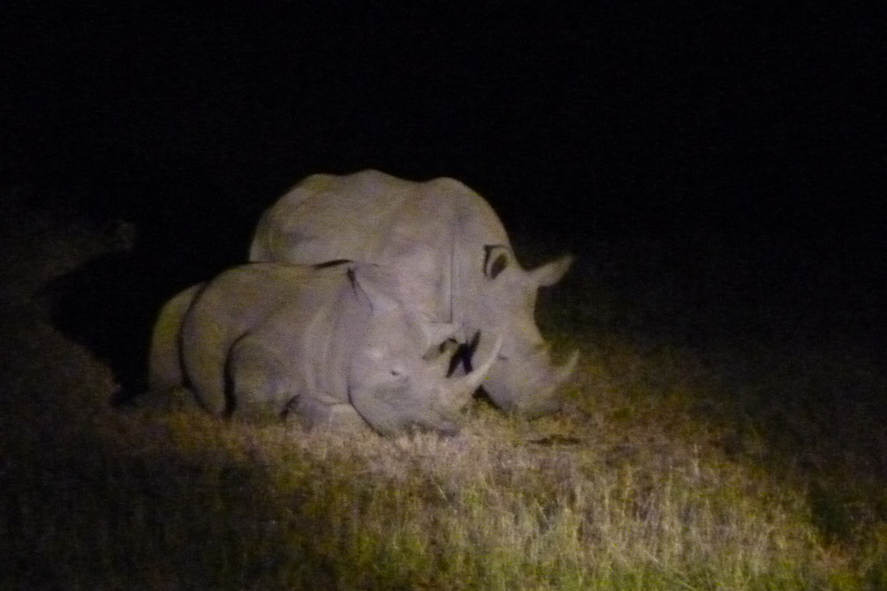 another white rhino and youngster — we seem to spot them only at night