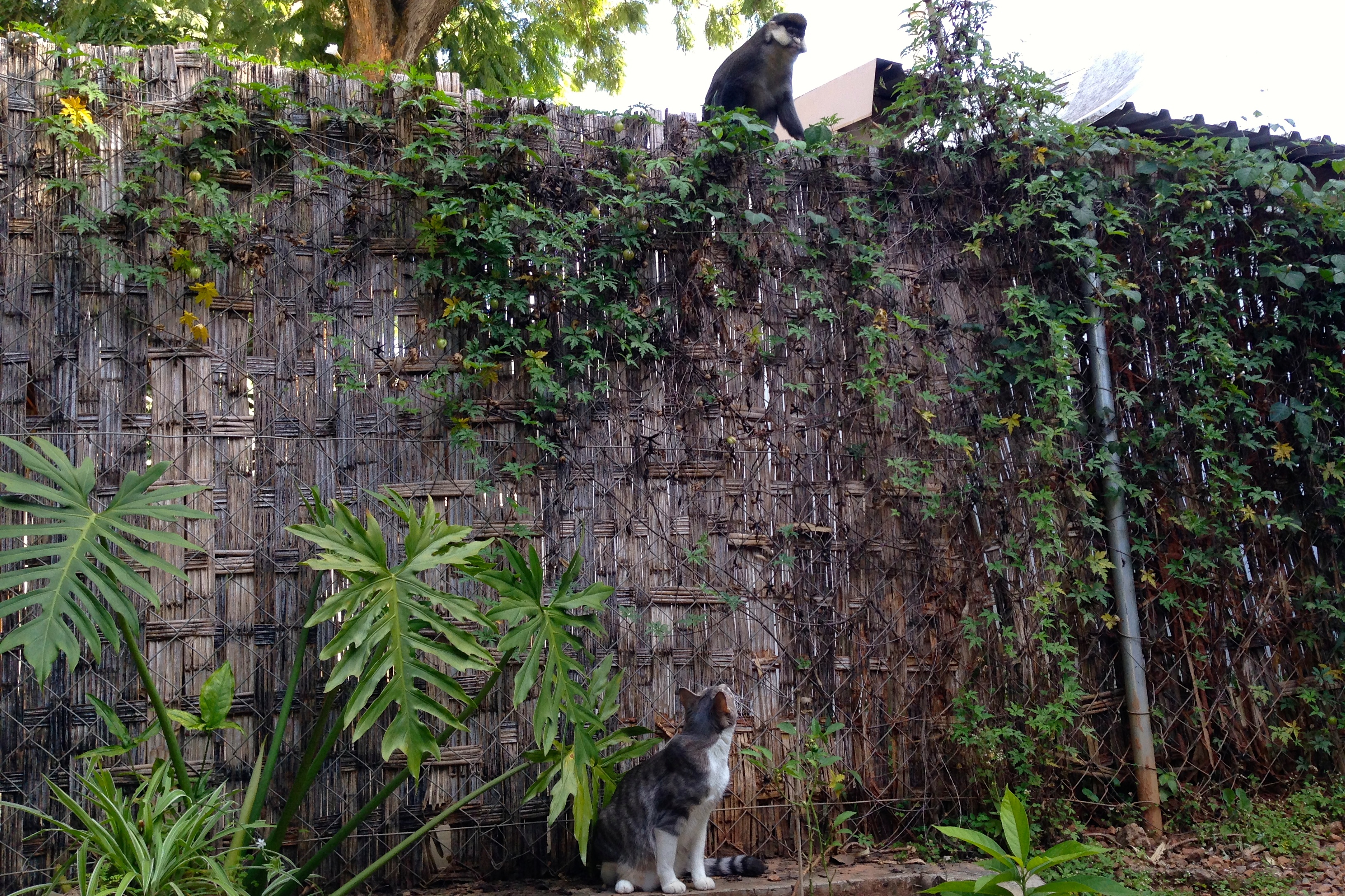 (April) Lucy and Zawadi getting to know each other after our outdoor “cat fence” was completed