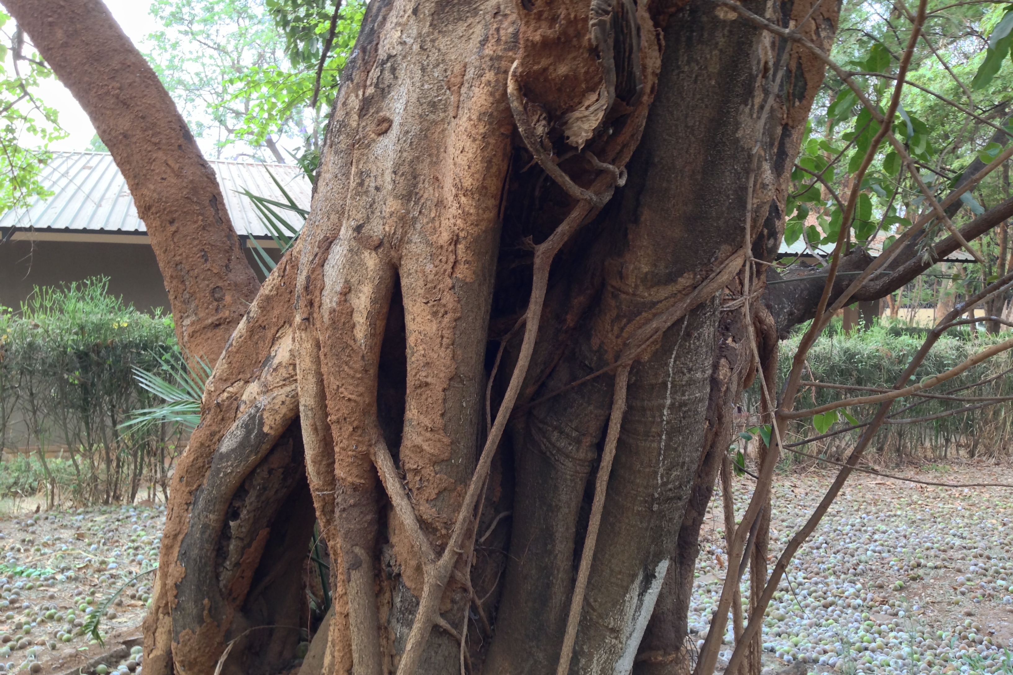 There’s one other fruit that’s ready to go at this particular hot, dusty moment: the fig. Shame is, we can’t eat it. At least, that’s what we’ve been told. There’s a large fig tree just outside our yard, and if I’m sitting outside I can hear the nearly constant plop plop of over-ripe figs hitting the ground. We can’t walk to the canteen or the social club without stepping on them, which immediately go squish under our feet.