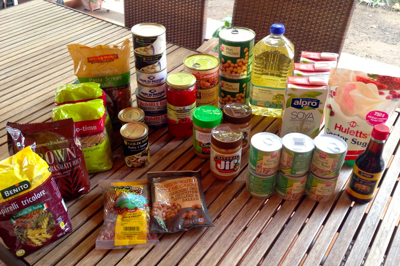 A friend once asked me to document what we eat in a normal week. I’m finding the challenge pretty tricky. But here’s what I bought during one shopping trip, July 2014, intended to last a few months.