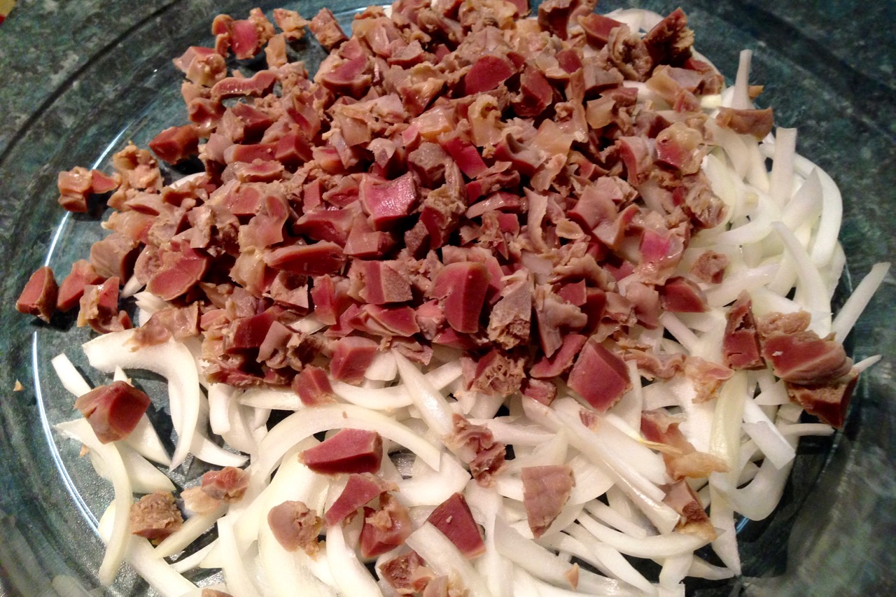 IMG_8421 Published on 24 January 2016 in Plantain PanoplyFull resolution (1280 × 853) ← Previous Next → Mmm, raw onions and boiled chicken gizzards!