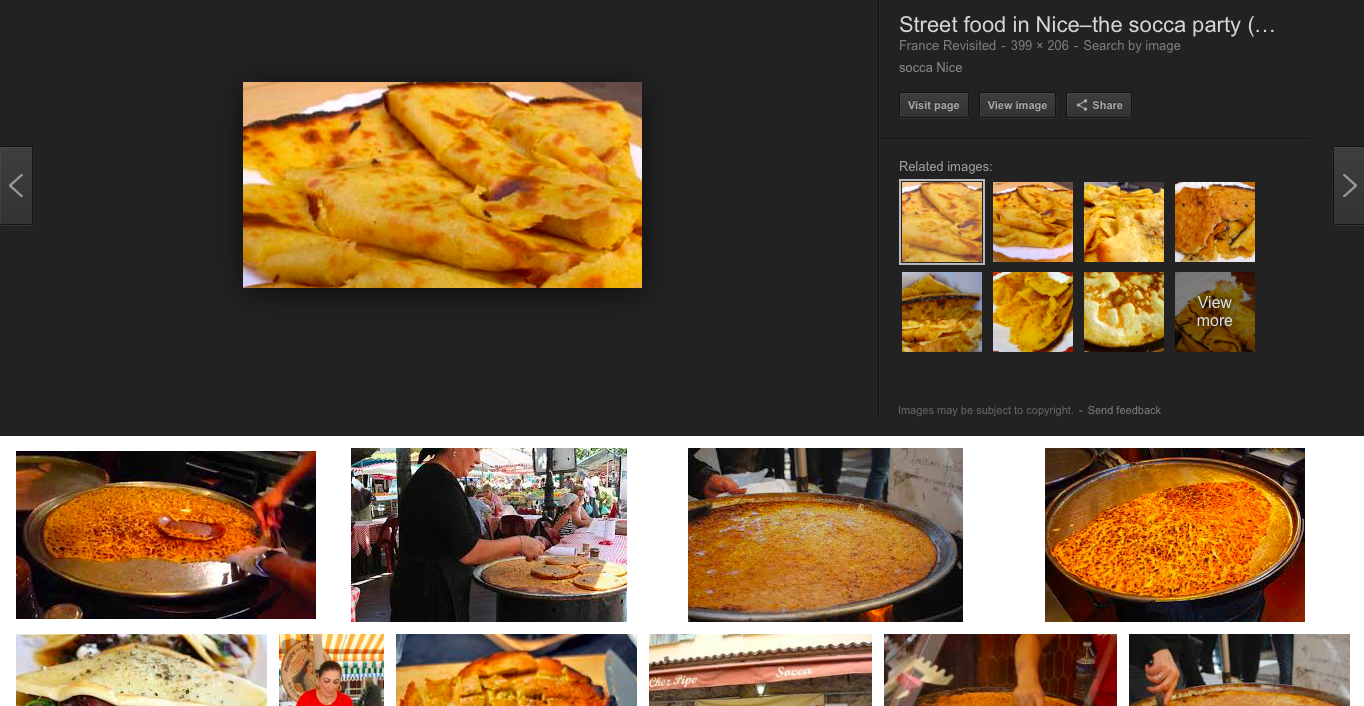 Screen Shot 2017-04-20 at 9.28.39 AM Published on 20 April 2017 in Any Time is Socca TimeFull resolution (1364 × 706) ← Previous Next → I forgot to take my own photos while there, but our socca that day looked a lot like this one.