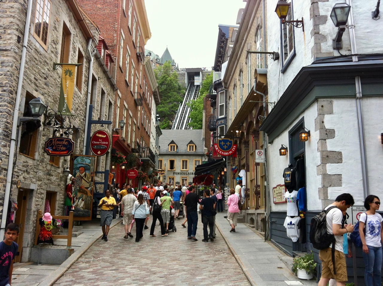 Petit Champlain, the oldest commercial district in North America, in front of the funicular up to Château Frontenac, the most photographed… yeah yeah you got it