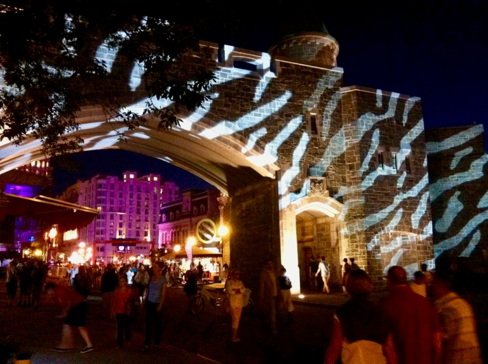 Moulin à Images, a FREE nightly light & sound show projected onto a grain elevator across the harbor